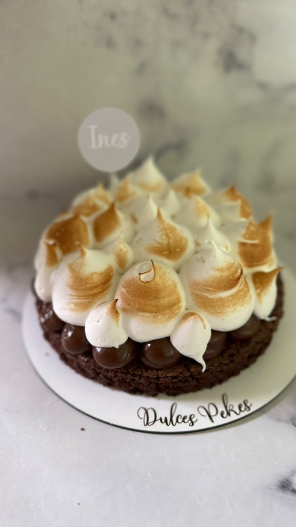Base húmeda de chocolate , con crema chantilly, dulce de leche, coronada con rulos de chocolate o frutos rojos.